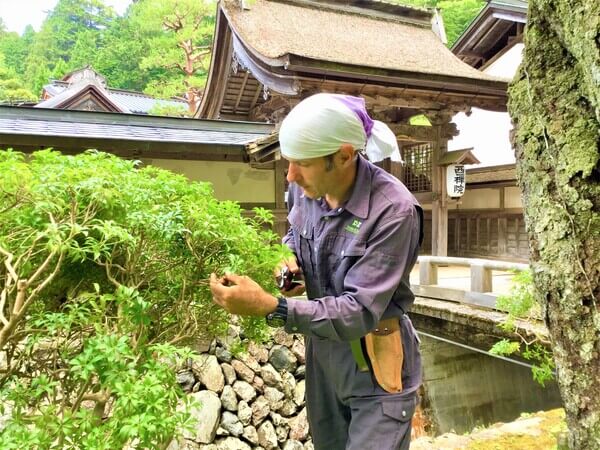 ドミニクさん:40年間京都に住んでいたドイツ人の大学教授の方が、京都の老舗の日本庭園の会社を紹介してくれたんです。いきなり何も知らないまま入っていったのですが、そこでの実習で興味が沸いたところから、今まで造園をやっています。